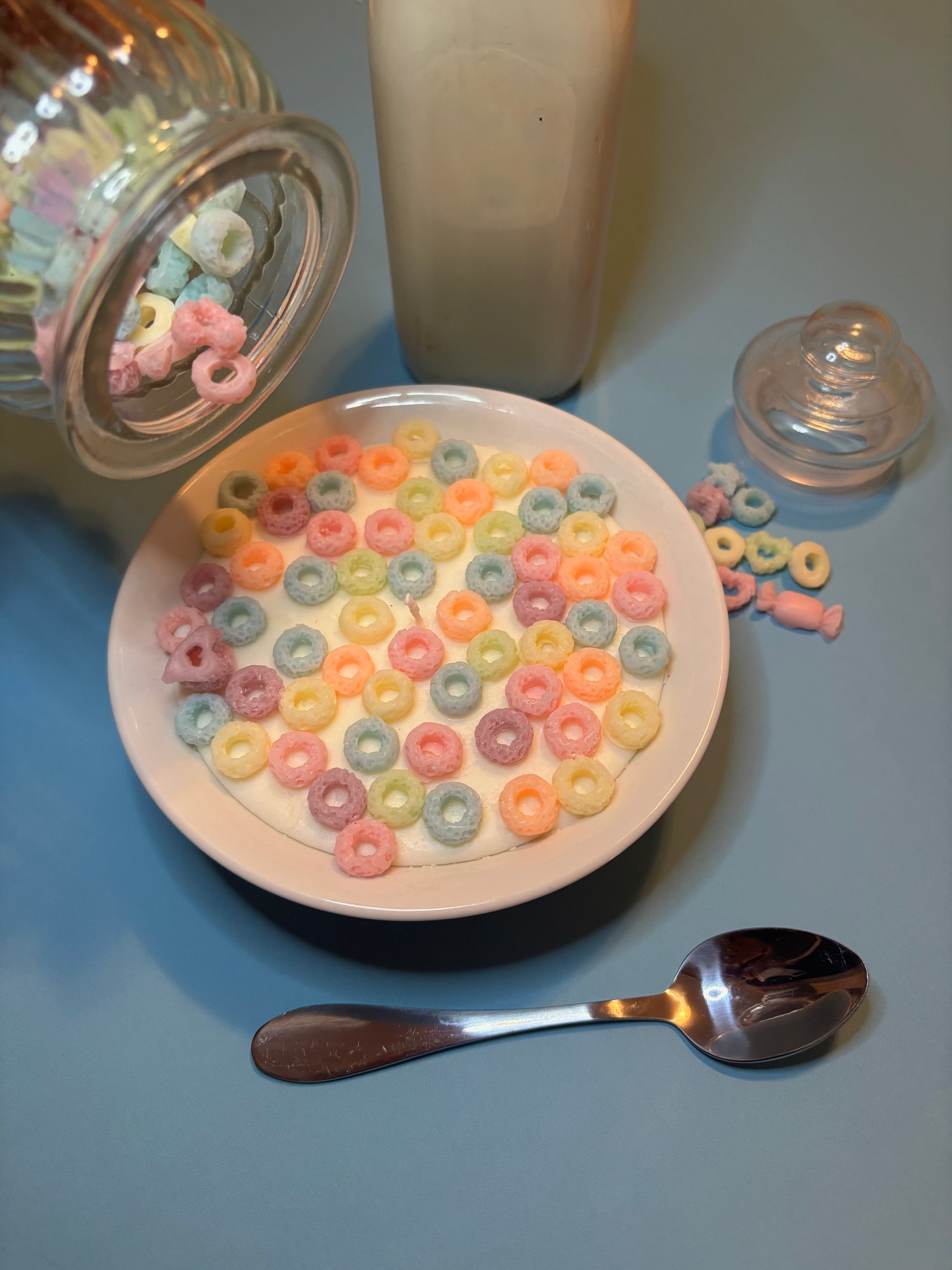 A nostalgic cereal-inspired candle bursting with fruity sweetness and colorful joy. Fun, cozy, and guaranteed to make your space feel like a happy morning. 🩵🥣